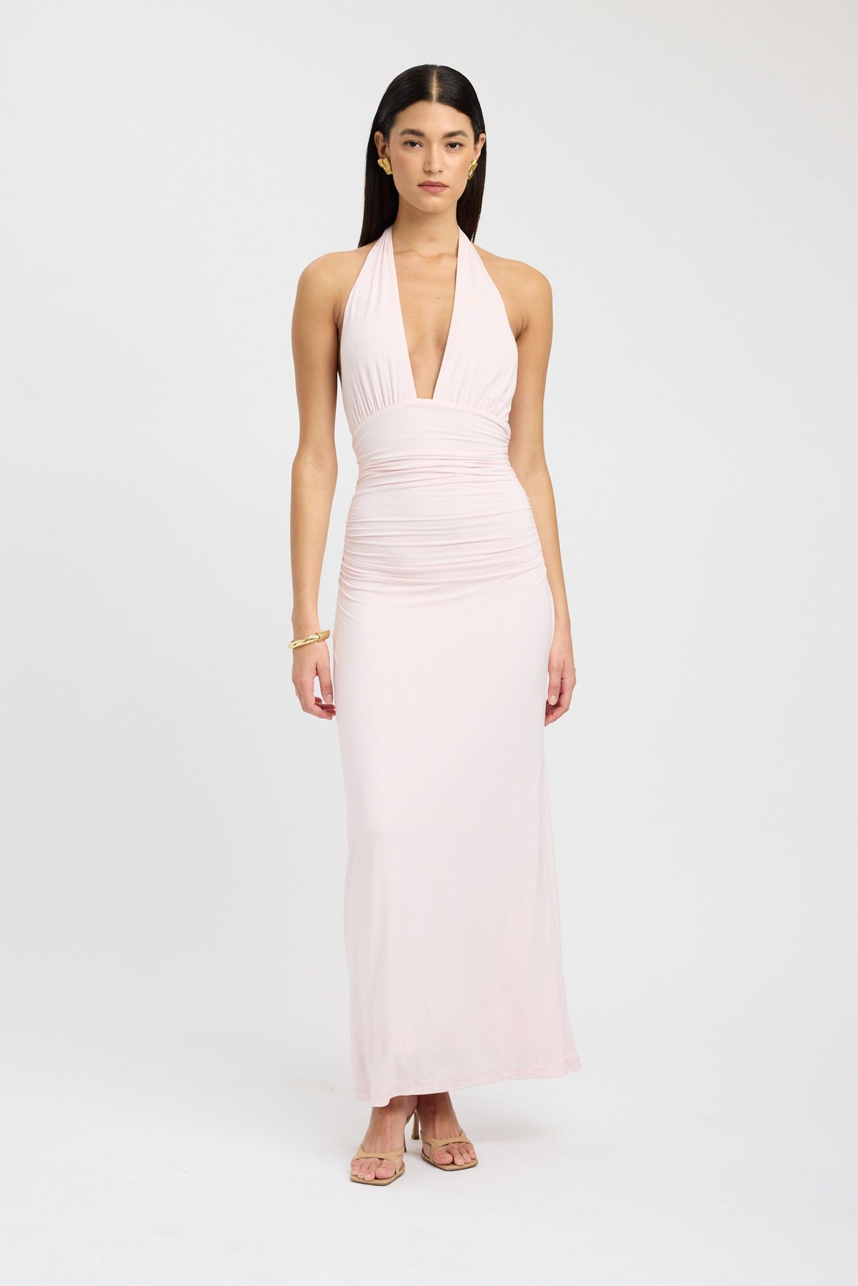 Embrace the allure of the Estella Maxi Dress. Features a captivating halter neckline and a flowing maxi silhouette, creating a graceful and feminine look. The dress is designed with a flattering fit around the waist and ties in the back, accentuating the silhouette.